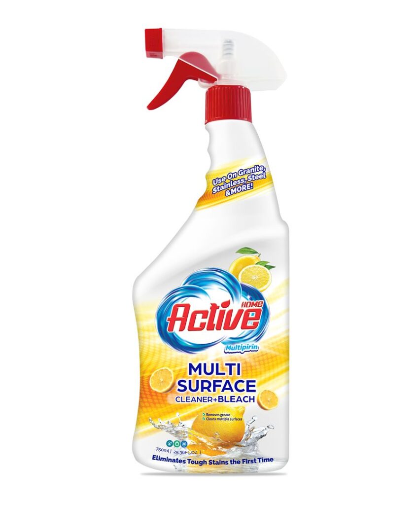 HOME ACTIVE Multi Surface Spray 750ML is a powerful, fast-acting, and versatile cleaning solution designed for daily household use across a wide variety of hard surfaces. Formulated with advanced cleaning technology, this multi-purpose spray removes dirt, grease, stains, fingerprints, and household grime effortlessly while leaving surfaces fresh, polished, and hygienically clean. Ideal for kitchens, bathrooms, living rooms, offices, and commercial environments, it delivers a complete cleaning solution in one convenient bottle.