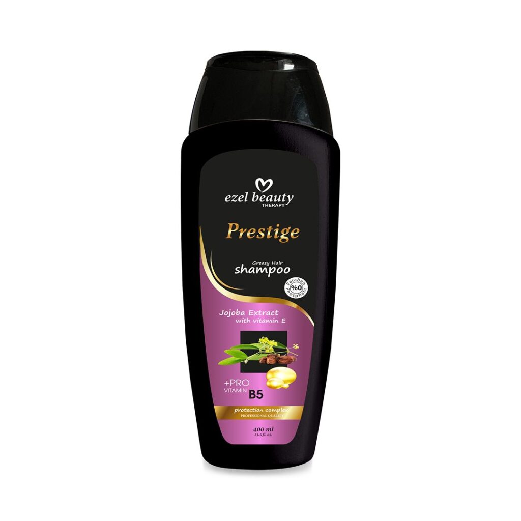 Ezel Beauty Therapy Prestige Şampuan – Jojoba Özü 400 ML, her saç tipi için uygun olup özellikle kuru, yıpranmış ve dengesiz yağlanmaya eğilimli saçlarda etkili sonuç verir:
