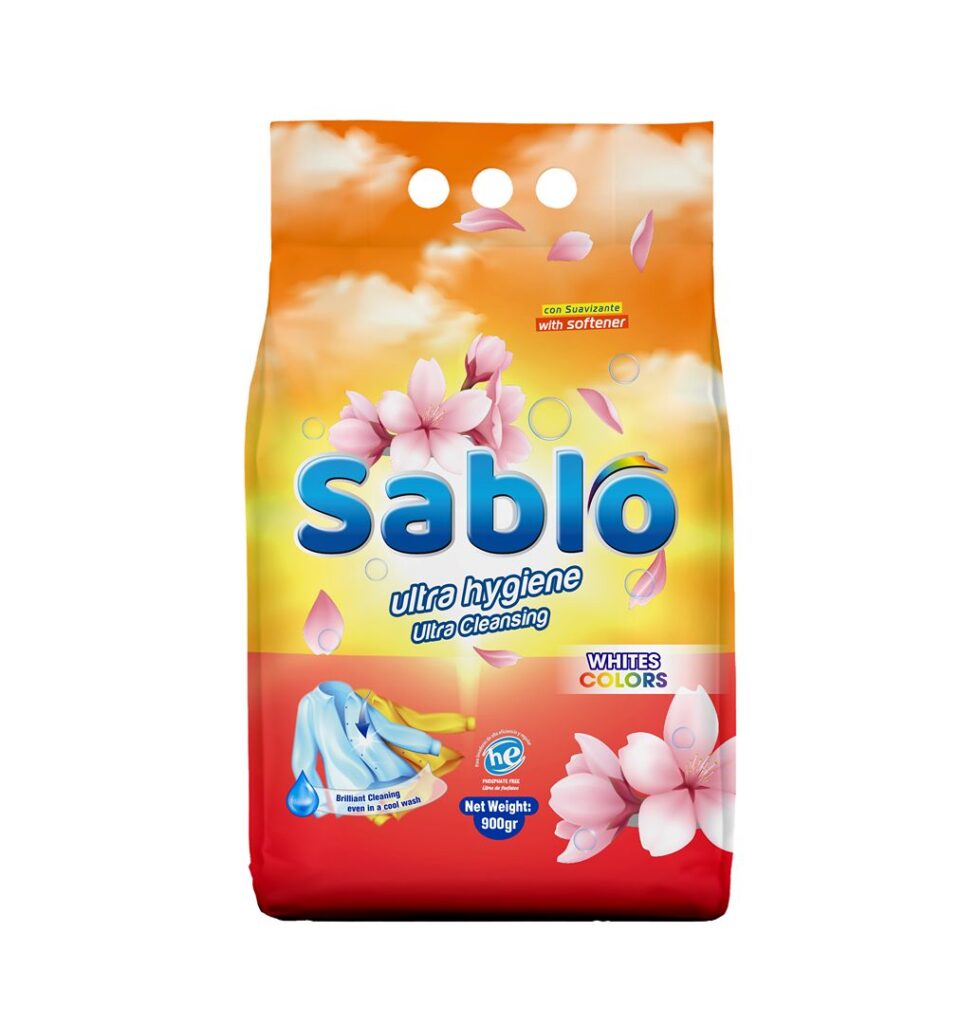 Sablo Matik Toz Deterjan – Beyaz & Renkli 900 GR, tüm çamaşır türleri için uygundur: